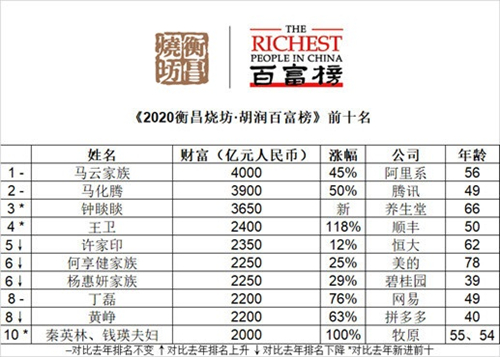 2020胡潤(rùn)百富榜:馬云捐1000億仍是首富