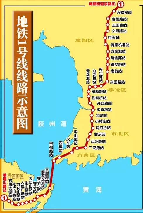 地鐵1號(hào)線設(shè)40座車站,其中換乘車站達(dá)12座,起點(diǎn)東郭莊站到終點(diǎn)峨眉山路站,連接了青島火車站、青島北站、青島機(jī)場(chǎng)、黃島汽車站、汽車北站等重要交通樞紐,是一條南北大動(dòng)脈!