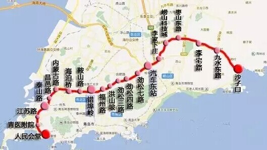 線路起自城陽區(qū)紅島街道,沿線主要經(jīng)過高新區(qū)、上馬街道、城陽現(xiàn)狀中心區(qū)、惜福鎮(zhèn)、土寨等區(qū)域,止于嶗山區(qū)王哥莊街道,線路長(zhǎng)約51.5km。