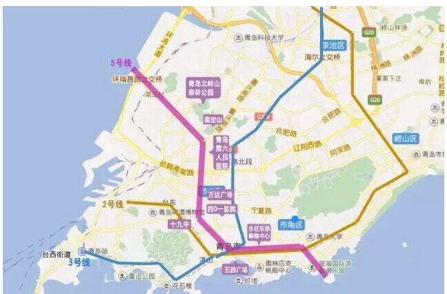 8號(hào)線連結(jié)了膠州市和市南區(qū)、市北區(qū)、李滄區(qū)