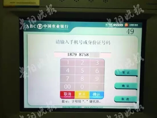 站在農(nóng)行ATM機前,看一眼攝像頭,再輸入手機號、取款金額、密碼,自動吐鈔,拿走現(xiàn)金。