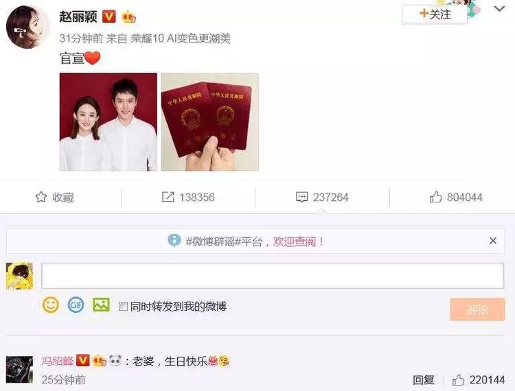 趙麗穎馮紹峰官宣婚訊致微博宕機(jī)