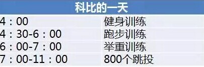 科比是最偉大的NBA球員之一,那句“我知道凌晨四點的洛杉磯”激勵了許多人拼搏向上。但是科比的成功不是因為他起得夠早,而是因為他的訓練有效。凌晨四點在家睡覺和到訓練房無所事事,并沒有什么差別。真正讓他成功的,是下圖訓練時間表中這些針對性的專業(yè)訓練: