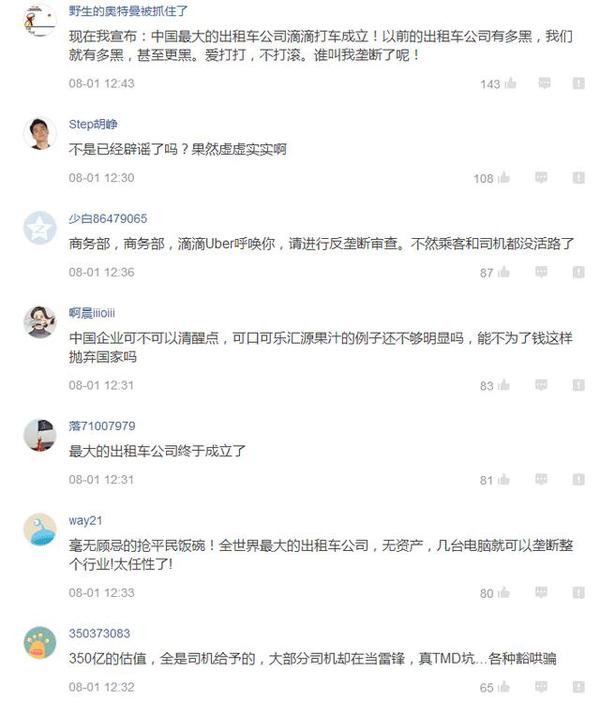 有人說(shuō),U滴合并了,我卻高興不起來(lái)!因?yàn)閷?duì)于用戶(hù)而言,我只關(guān)心你是否物美價(jià)廉。當(dāng)競(jìng)爭(zhēng)陷入僵局、燒錢(qián)似無(wú)止境的時(shí)候,兩家打車(chē)軟件巨頭突然決定握手言和溫柔相待,這讓一旁的“吃瓜群眾”著實(shí)懵逼。 從此以后兩家軟件你中有我,我中有你,不分彼此,消息一出,網(wǎng)上嘩然一片,有網(wǎng)友揚(yáng)言:“一家獨(dú)大,反壟斷不坐了!”,而另一方的專(zhuān)車(chē)司機(jī)們也放出豪言:“不補(bǔ)貼,不干了!”。