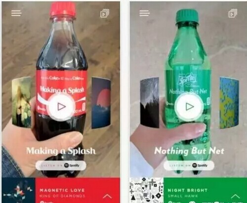 不過最近 ,可口可樂又放大招,和流媒體音樂平臺Spotify合作以AR技術(shù)打造喝可樂聽音樂的科技感享受。用戶通過專有App掃描瓶身就能聽到189種Spotify列表上的音樂,扭轉(zhuǎn)瓶身還能調(diào)解音樂播放順序。在技術(shù)浪潮推動下,不知道又要有多少飲料搭肩黑科技刷新體驗,看來值得期待。